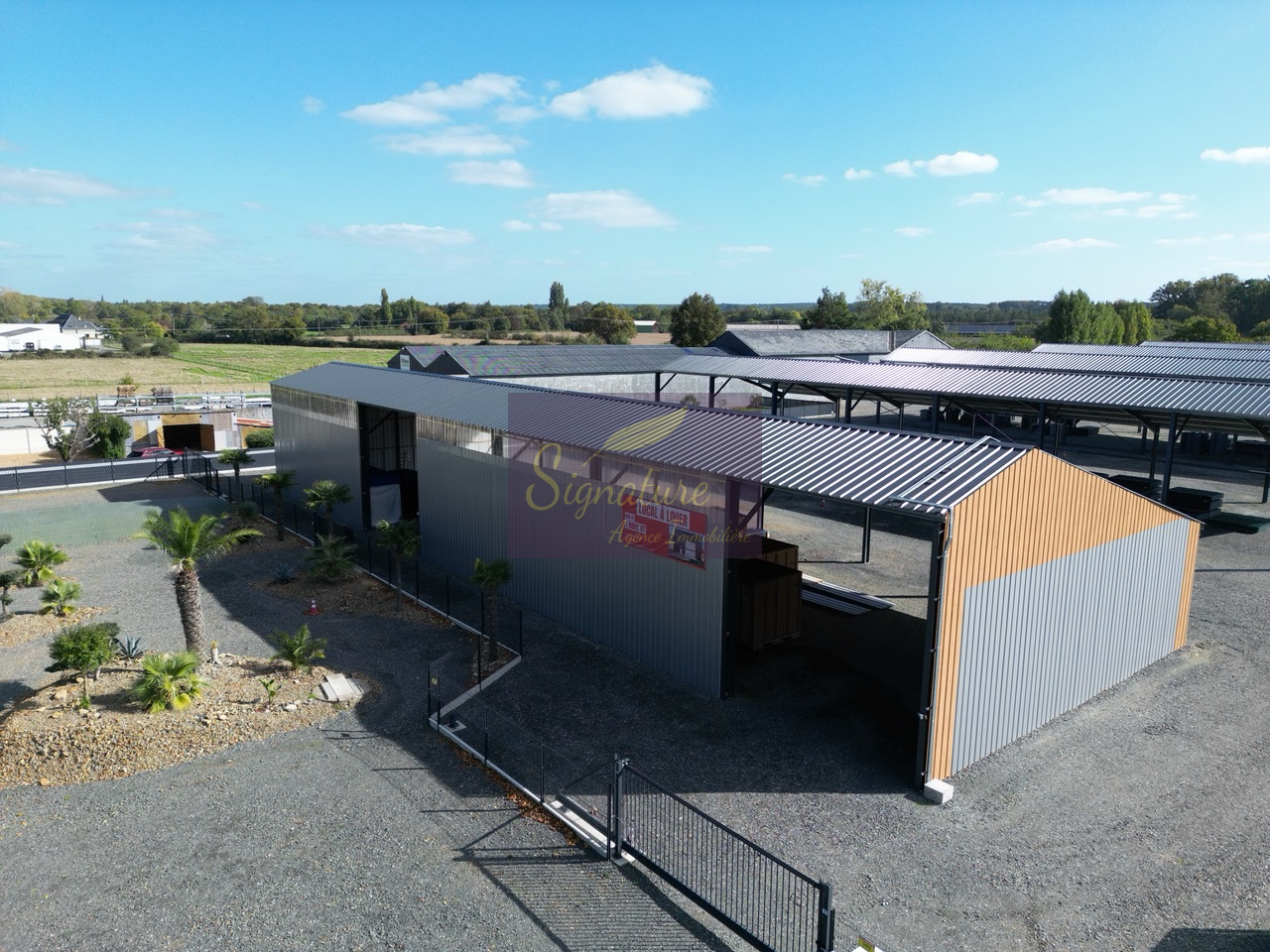 Ensuite sur l'ensemble de 1ha et demi, retrouvez 4 autres bâtiments neufs de même taille (1700m2) dont trois ouverts et un dernier clos pour y stationner ou entreposer des matériaux.