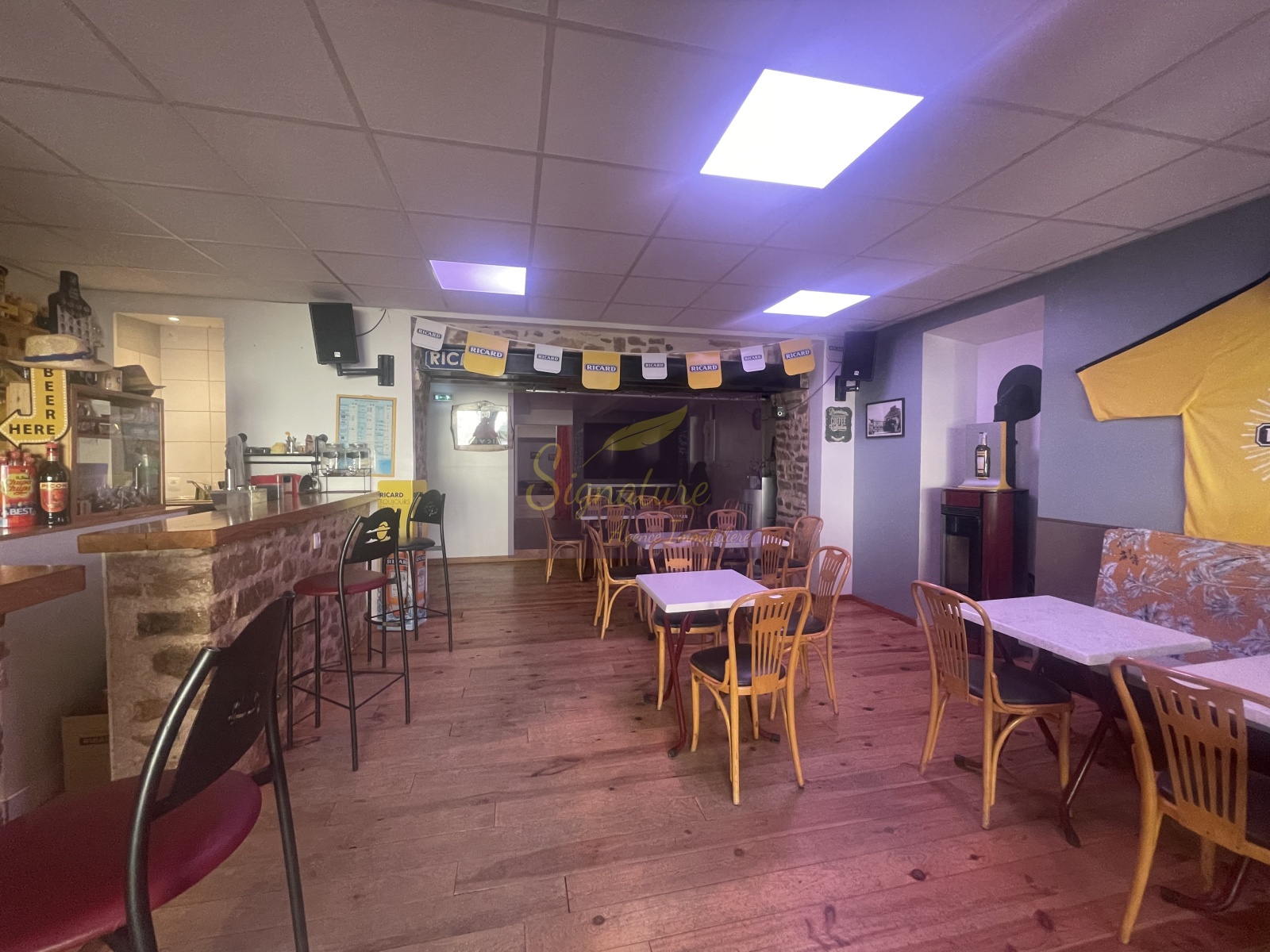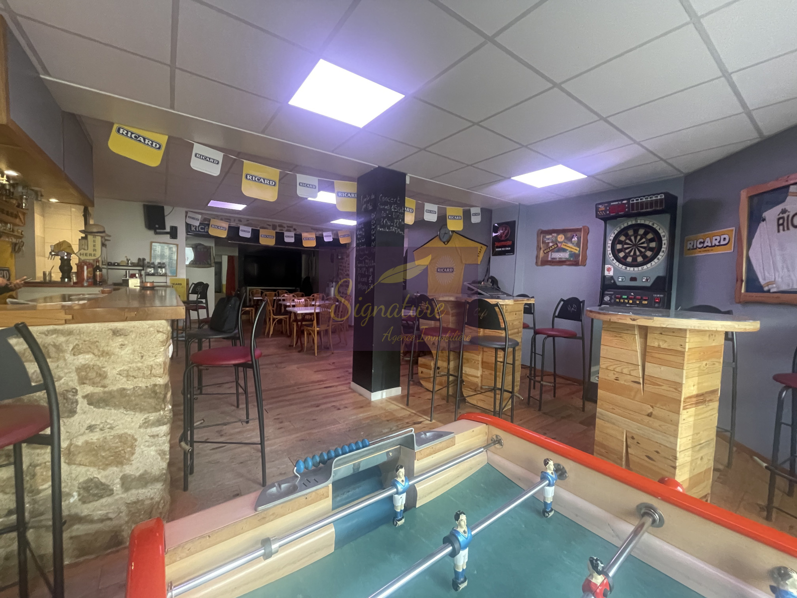 Gros potentiel avec grande salle de reception bar et terrasse de 50 places assises lors de beau temps, scène pour concert, TV écran géant pour rediffusion de matchs et salle indépendante d'environ 50m2 pour séminaire, anniversaire ou autre.