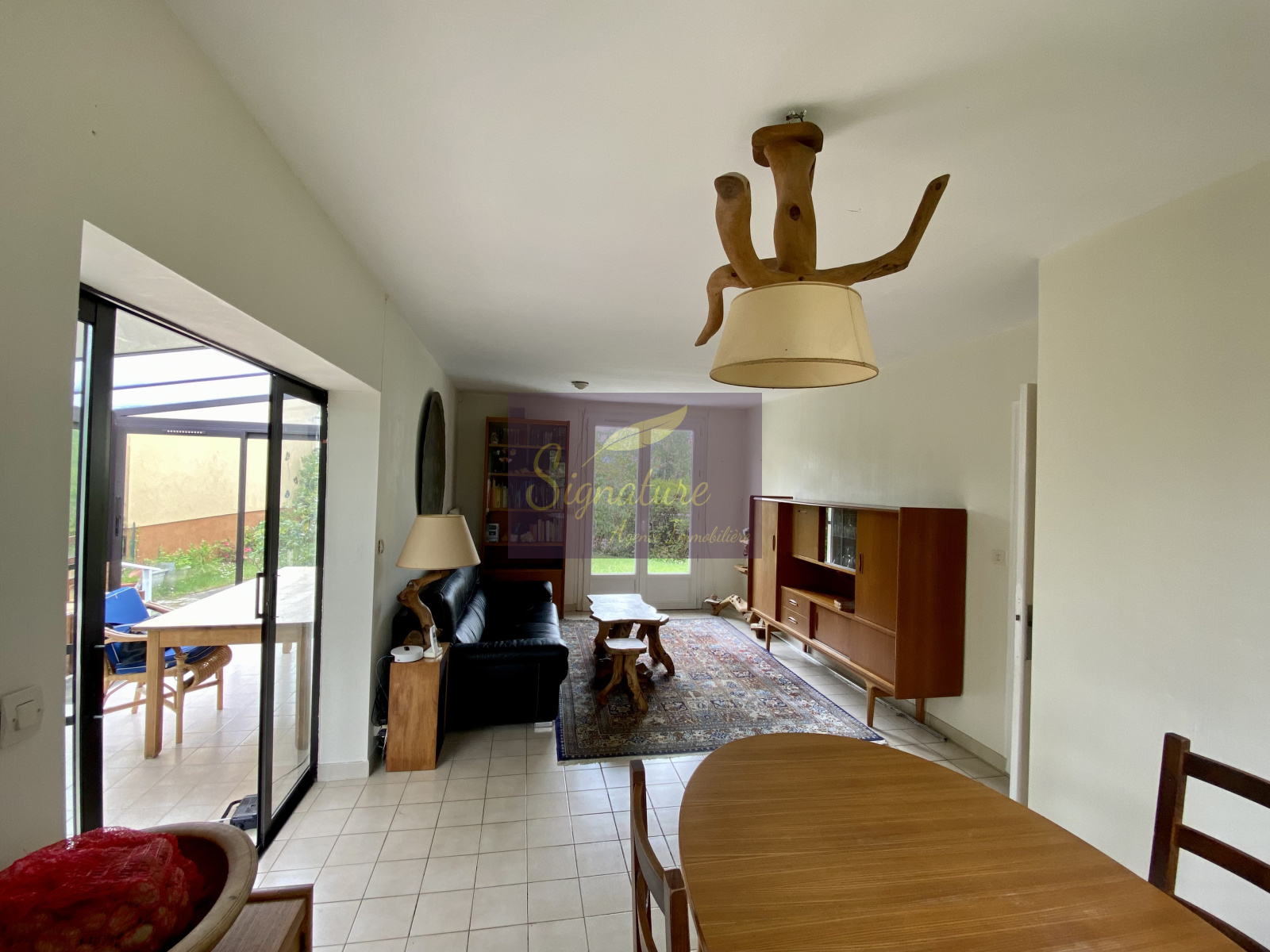 Cette maison est composée au même niveau d'un salon-séjour avec véranda vous donnant un espace de vie d'environ 40 m² , cuisine indépendante aménagée.